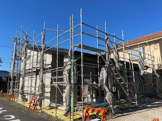 本日は台風🌀予報の前に、メッシュシートたたみ、まわってもらいまして、外部お披露目になりました。確認しやすくなった所で、軒天の仕上がり確認、塗装屋さん丁寧にありがとうございました。